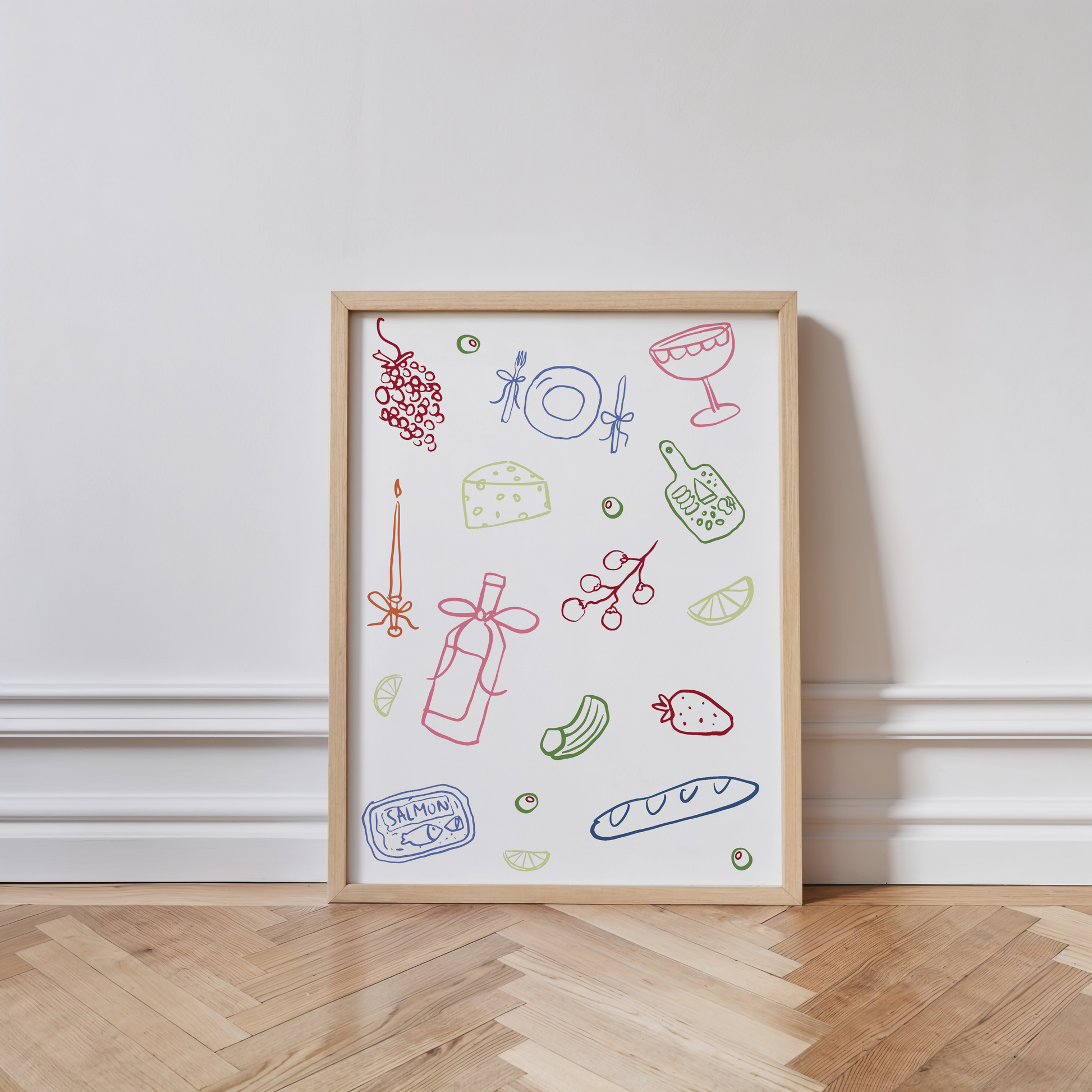 A print for the Dinner Party hosts and hostesses. The perfect gift for those whose love language are those moments together, sharing their favourite food and drinks with their favourite people.